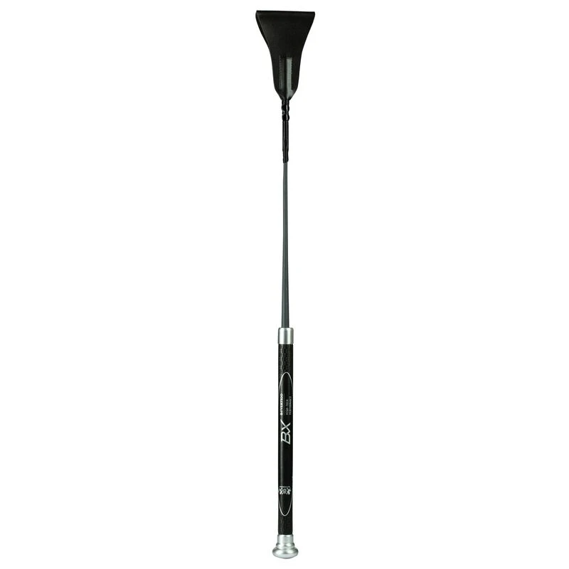 This bat fits perfectly in the rider’s hand with a rubberized grip. This rich grey and black strong bat is perfect for schooling or show.