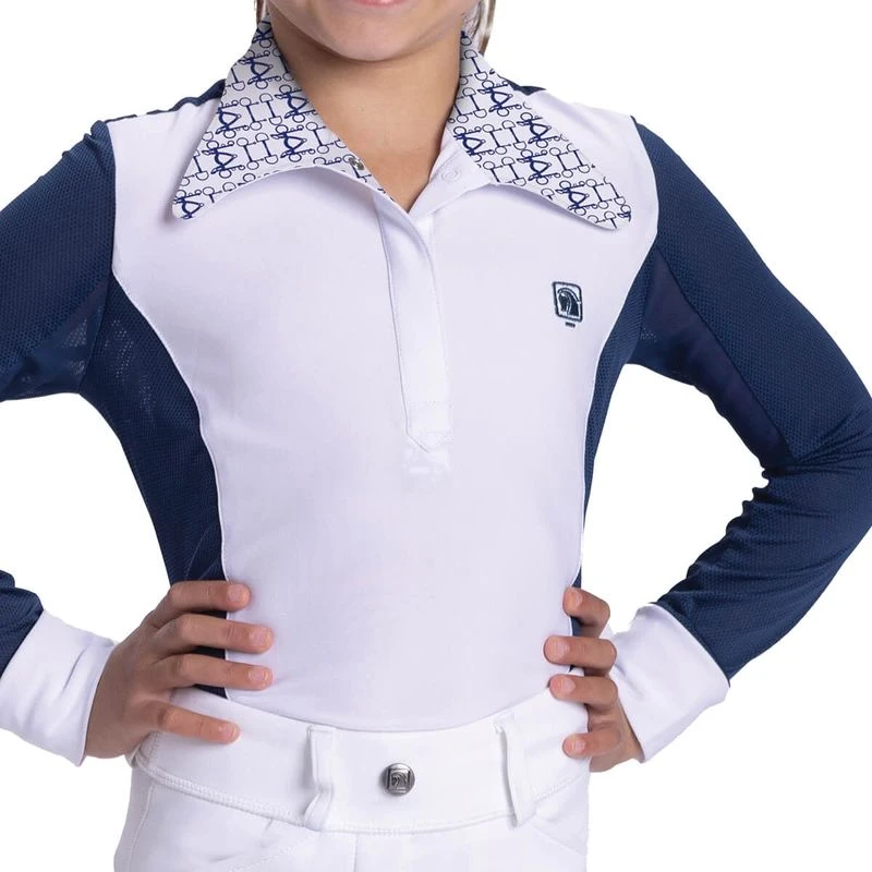 This shirt looks traditional when the snap collar is closed, but has fun prints on the inside that show when between classes. The crisp woven collar features magnetic snaps for ease of use. Discreet mesh under sleeves provides extra cooling even on the hottest day. The fabric is Cool-touch microfiber with Chill-Factor cooling fabric. Anti-microbial treatment keeps your shirt smelling fresh.