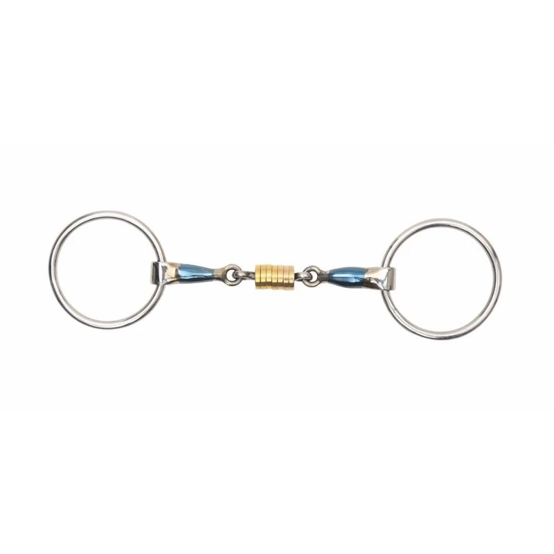 The cheeks are stainless steel, while the mouth is blue sweet iron with a copper roller.