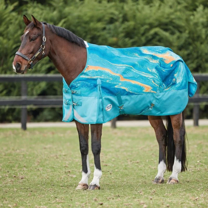 This medium-weight turnout is easily identified with the Weatherbeeta temperature gauge badge. An extra-large tail flap keeps cold and wind out. Compatible with the new WeatherBeeta liner system for added protection. The reflective strips on each side of the blanket and the tail flap offer extra visibility. Hydrostatic pressure tested to 2000mm plus. Moisture vapor tested to 3000g/m2 plus.